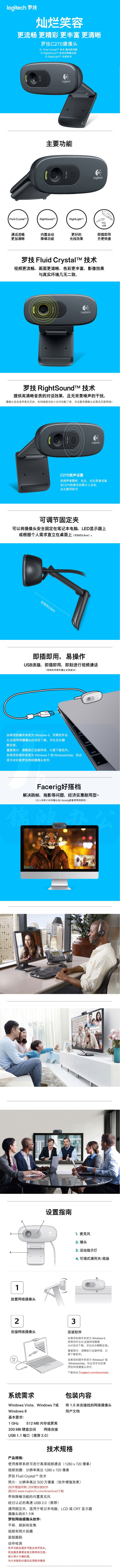 罗技(Logitech)C270 高清网络摄像头 网络课程 远程教育