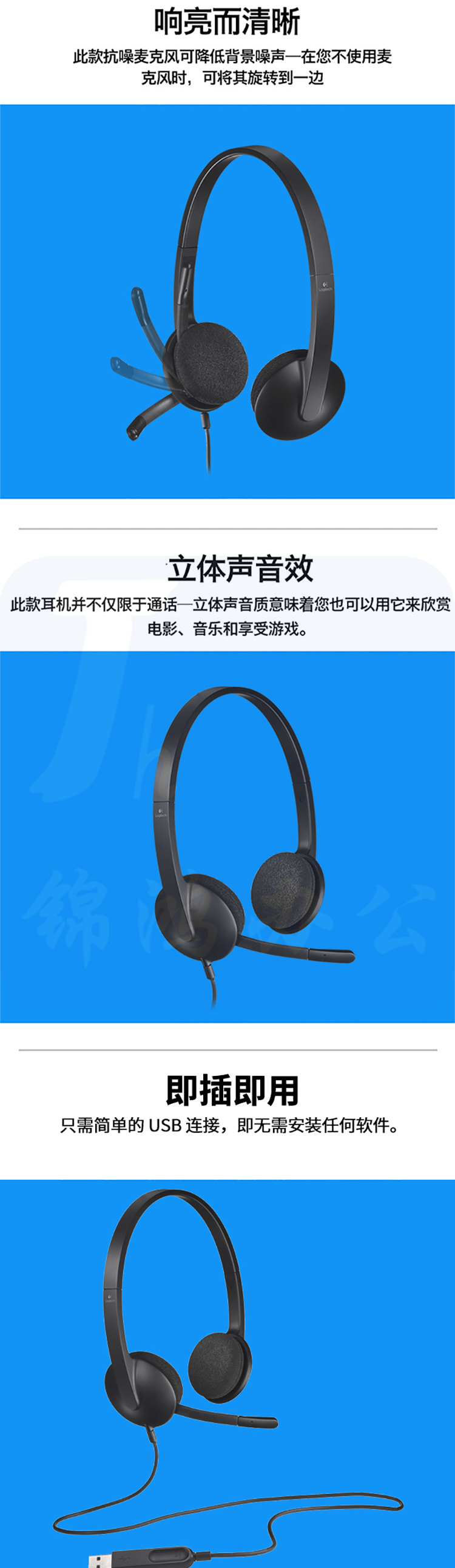 罗技(Logitech)H340笔记本台式电脑耳麦耳机麦克风可调节佩戴音乐 H340