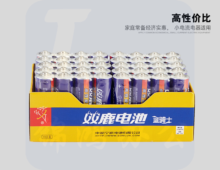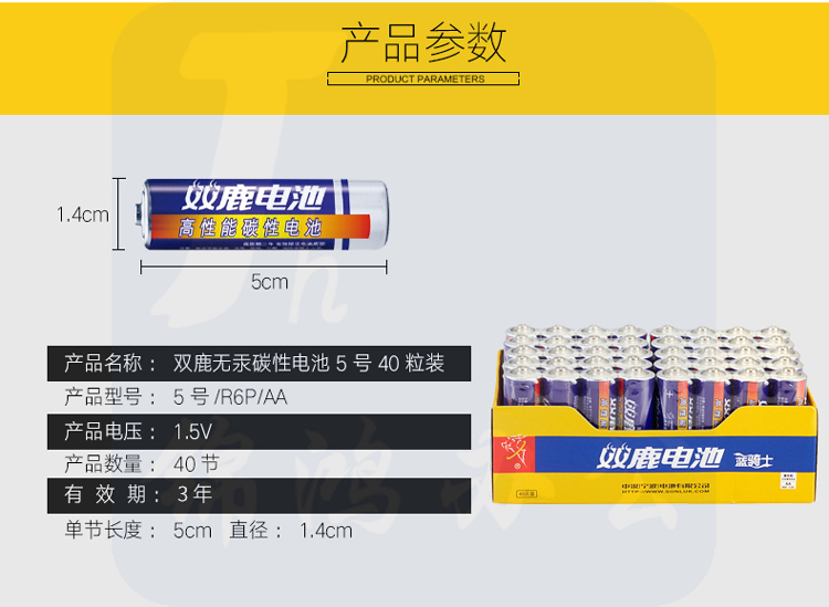双鹿 5号电池 碳性5号AA电池 蓝骑士 40粒/盒