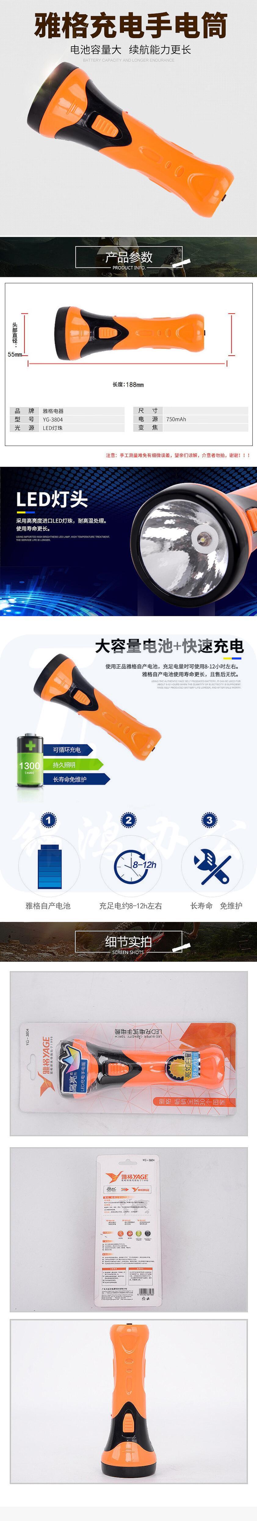 雅格 手电筒 YG-3804 充电式LED手电筒 户外露营便携家居照明应急手电