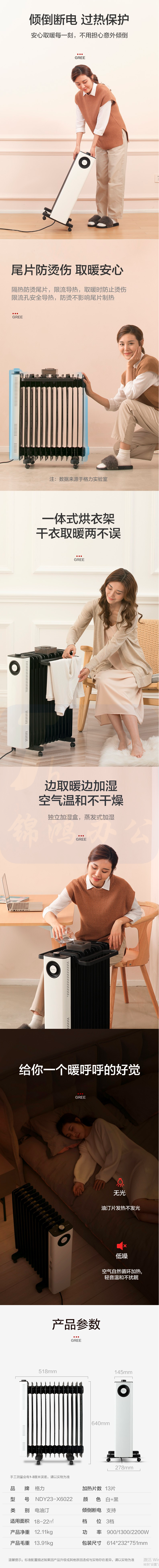 格力 NDY23-X6022 取暖器 电暖器13片 速热加湿电暖器 2200W