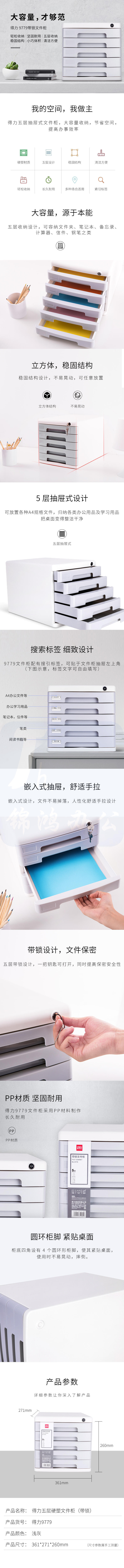 得力9779五层带锁文件收纳361*271*260mm(浅灰)
