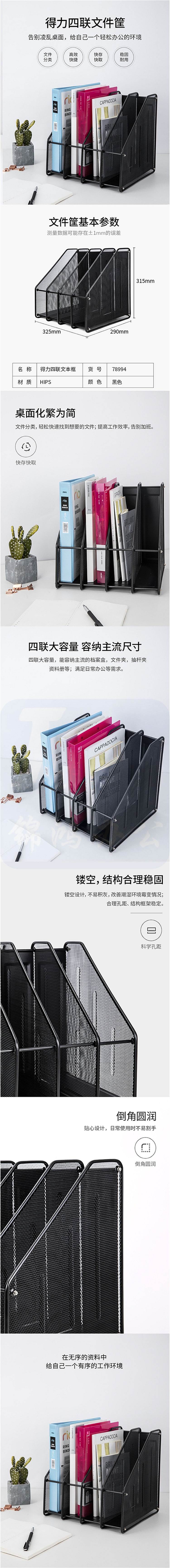 得力78994 四联可拆卸文件框 4联金属文件架 黑色