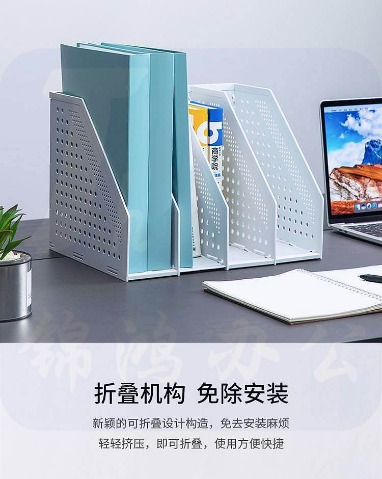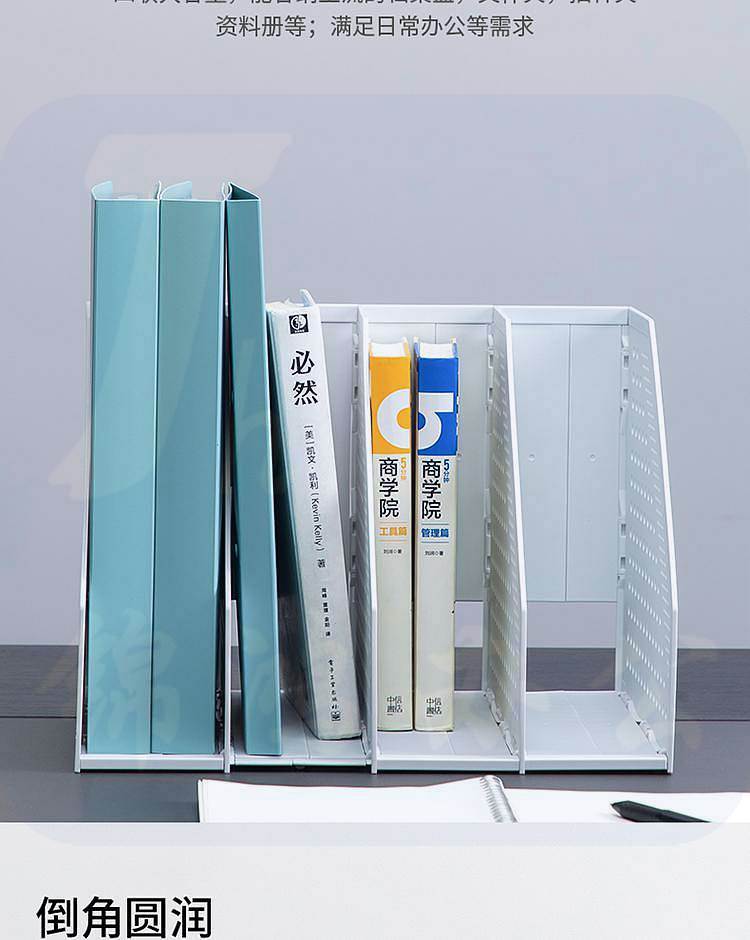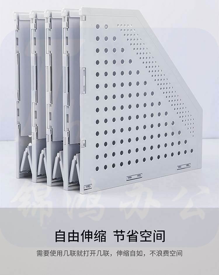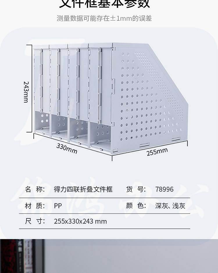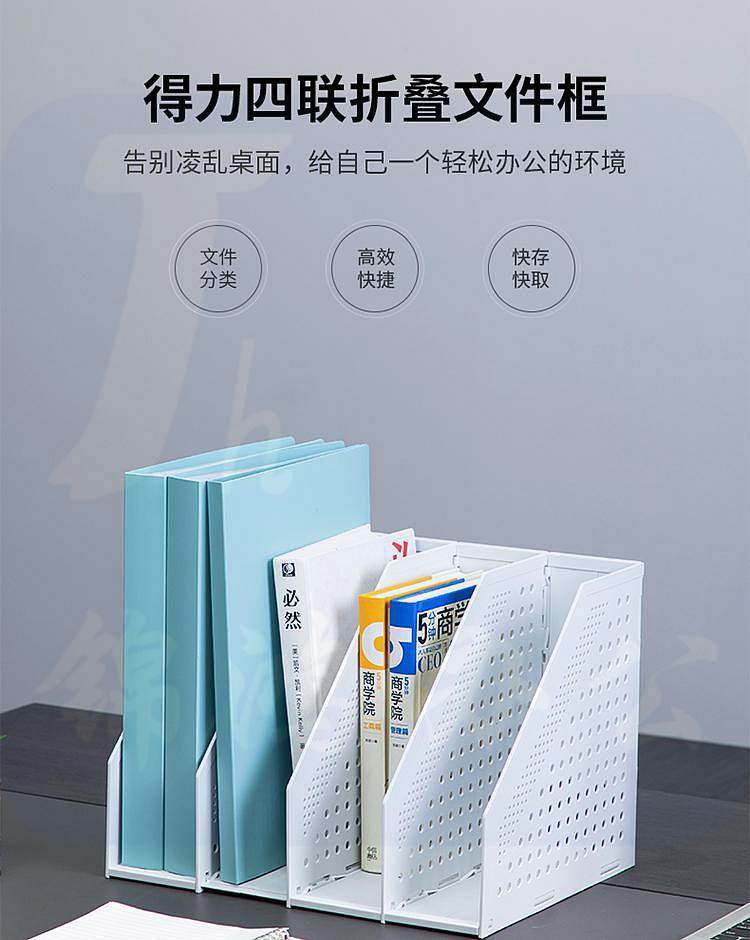 得力78996可折叠四联文件框 书立 拉伸式文件架浅灰