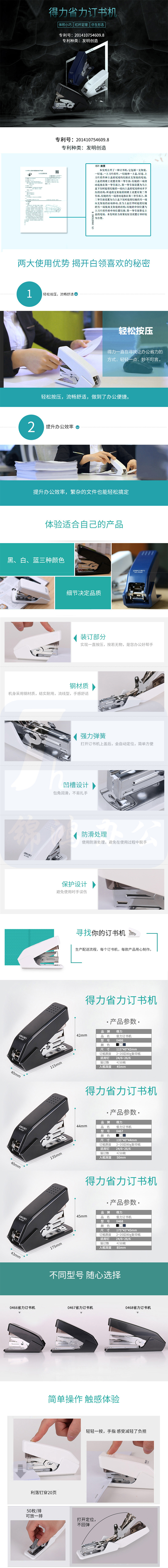 得力 单指按压省力订书机/订书器 适配12#订书钉 可装50枚钉 黑色0466(黑)