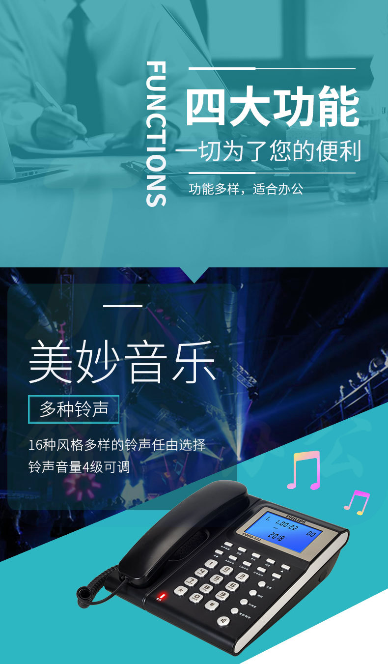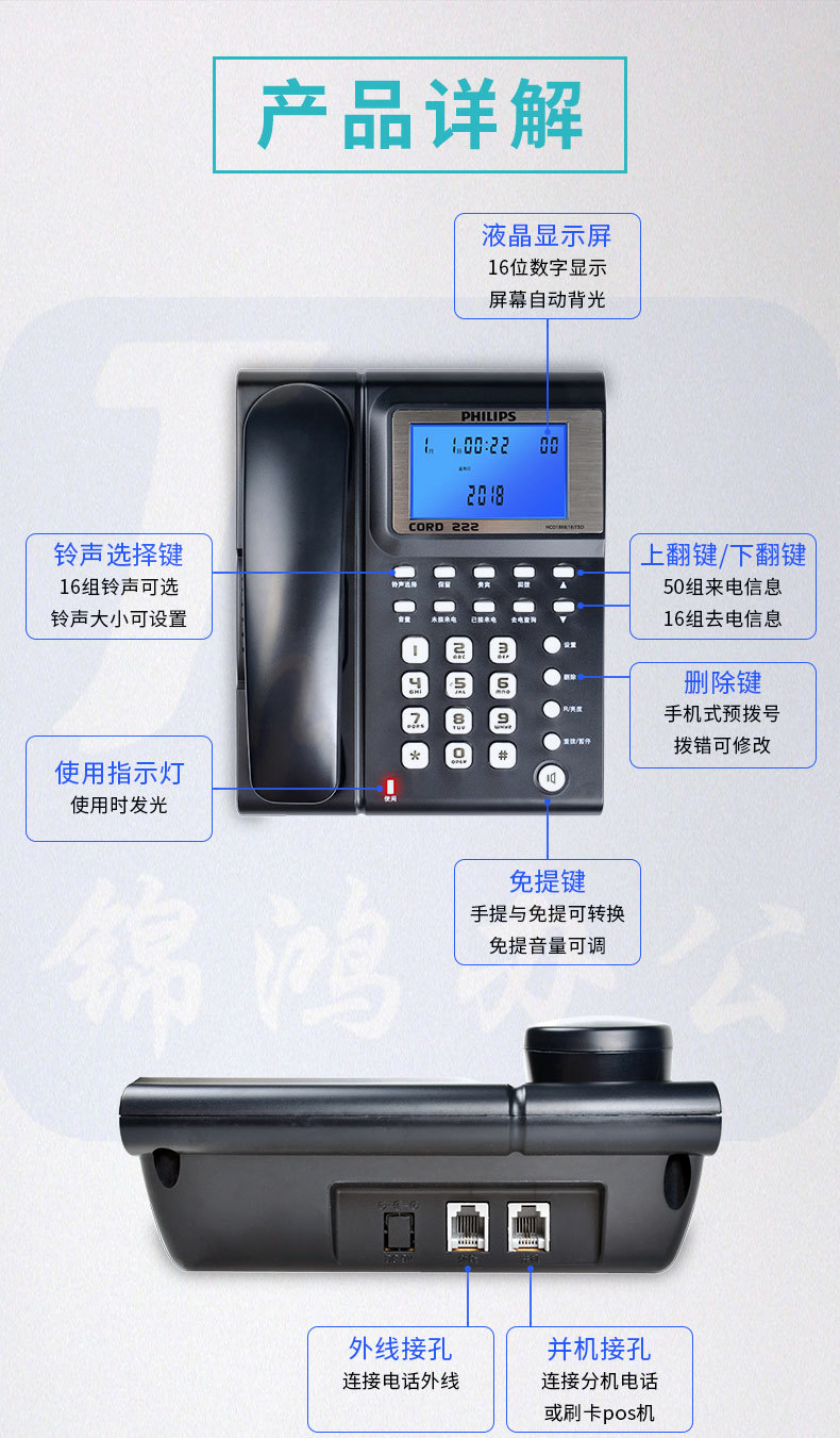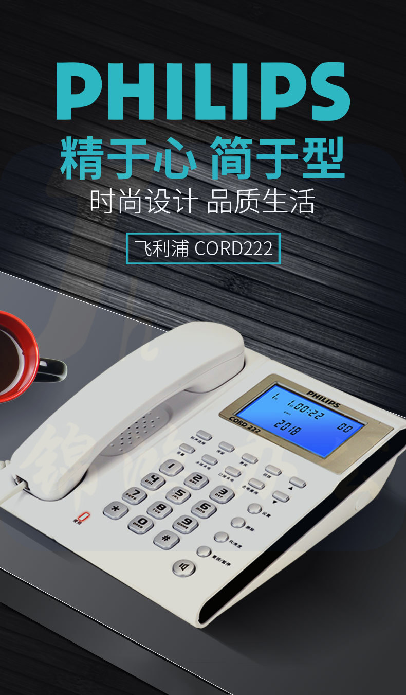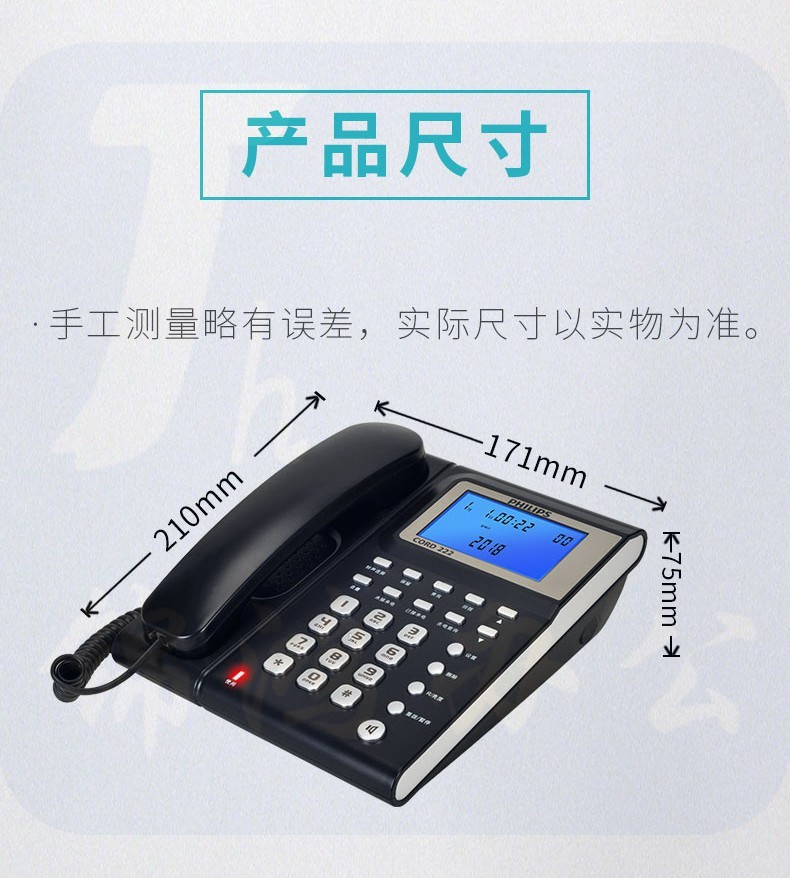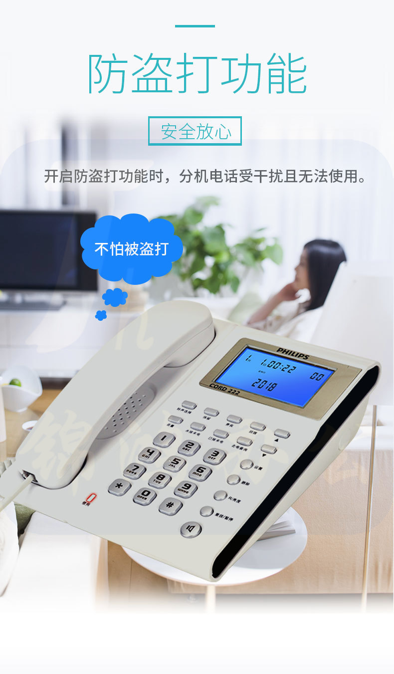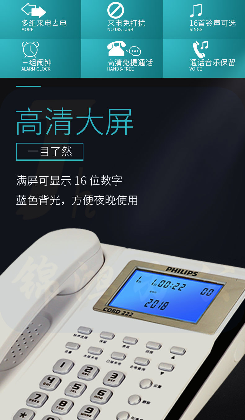 飞利浦 CORD222 电话机 (深海蓝) 来电显示