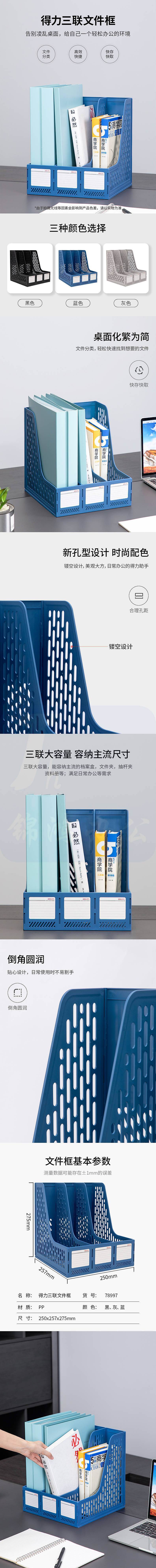 得力(deli)三联带标签镂空桌面稳固文件栏文件框资料框 三联-灰色78997