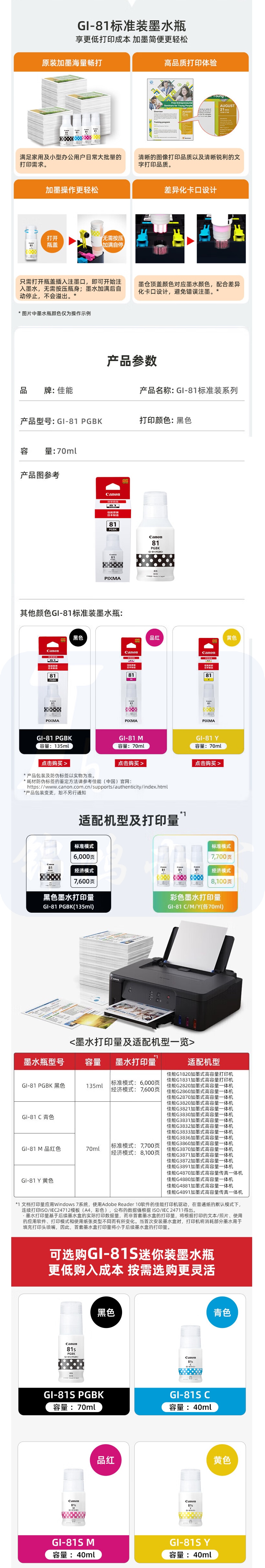 佳能(Canon)GI-81 M 品红色墨水