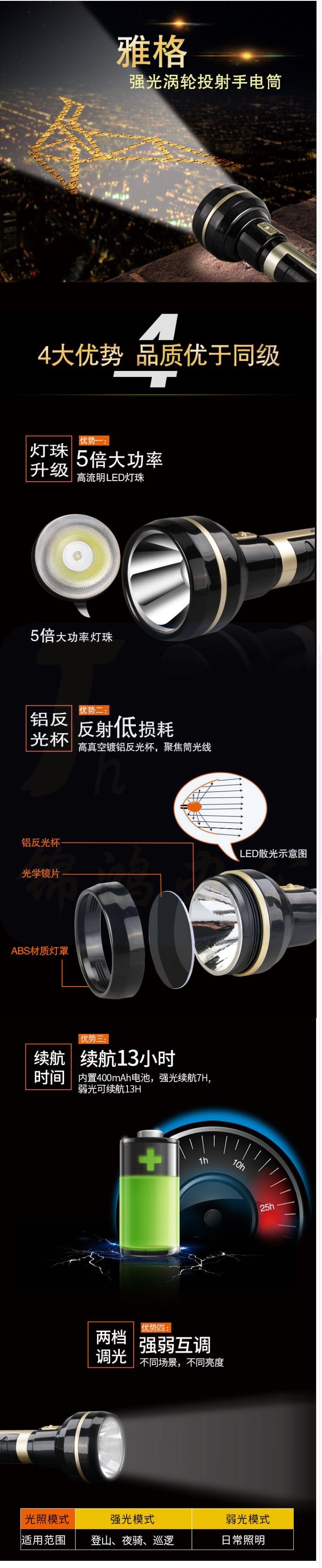 雅格 LED手电筒黑金刚300米远射程YG-3711