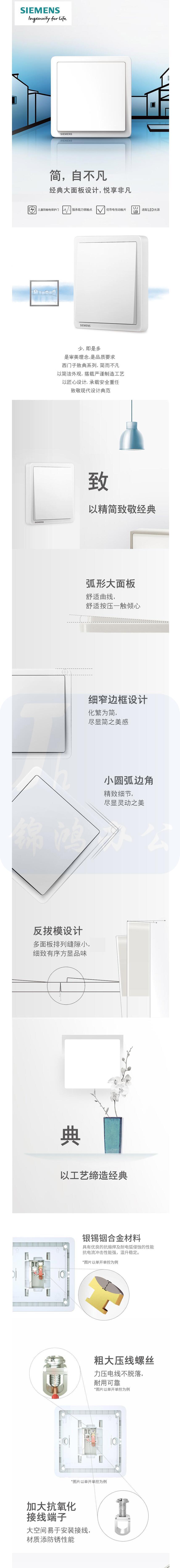 西门子(SIEMENS)开关插座 二开单控带荧光开关面板致典 雅白色