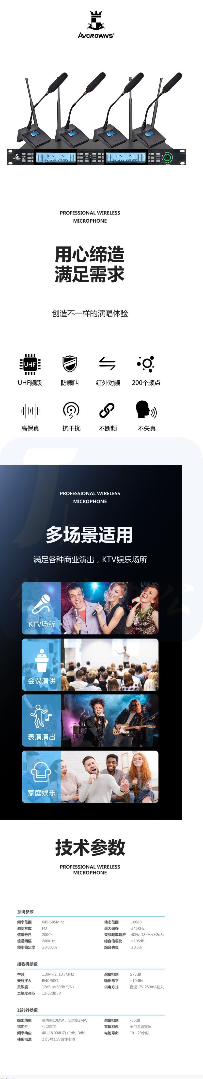 AVCROWNS 无线一拖四 会议主持演讲麦克风 AU-912 货号:LJ