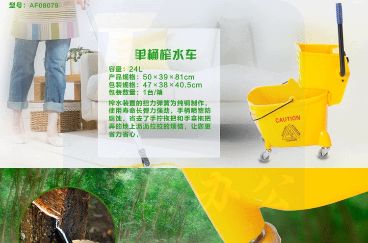 白云清洁 24L榨水车拖把清洗桶压水车挤水车墩布车挤拖把