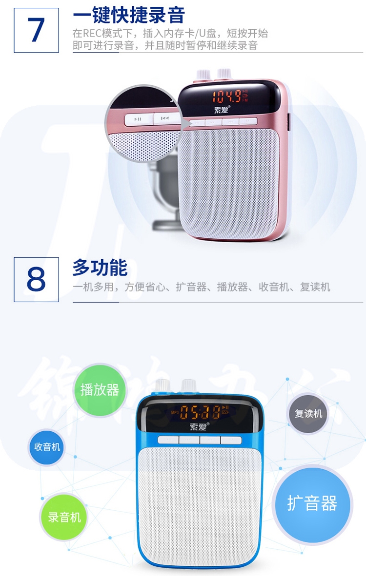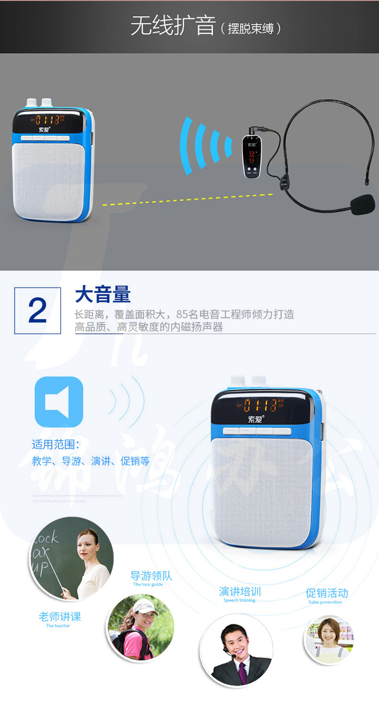 索爱(soaiy)S-518 无线便携扩音器 小蜜蜂教师导游专用腰挂大功率教学 睿智黑