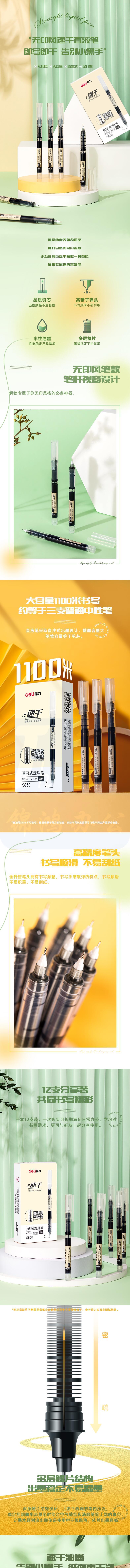 得力 S856 直液式走珠笔 0.5mm 签字笔 全针管中性笔 黑色12支/盒单支价格
