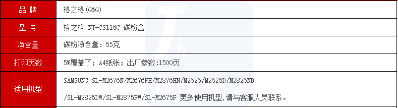 格之格(G&G)NT-CS116C 适用于 三星M2676 2676 2876HN M2626 2826ND