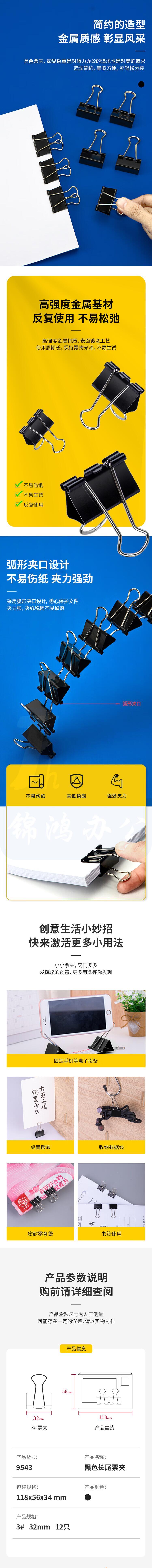 得力(deli)32mm3号金属黑色长尾夹/票据夹/燕尾夹/票据文件夹子 12只/盒 9543