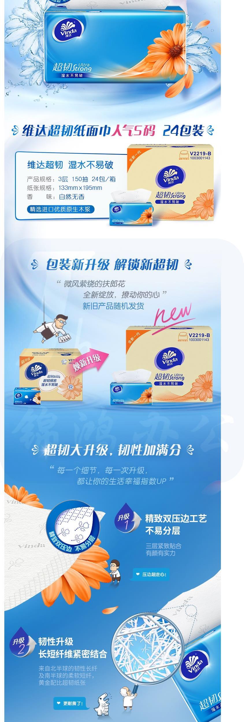 维达(Vinda) 抽纸 超韧3层150抽软抽纸巾*24包(中规格)