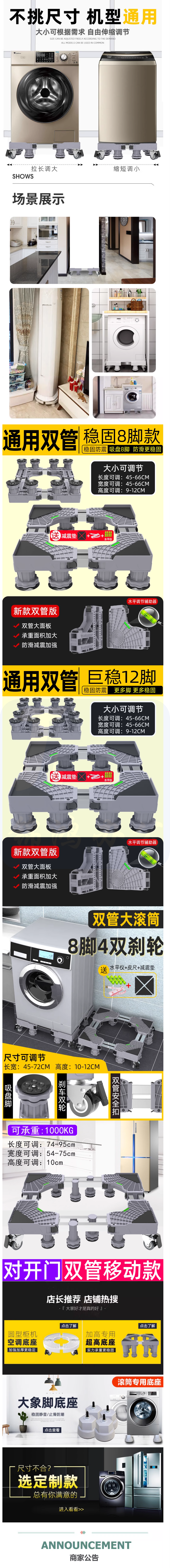 洗衣机底座 可移动万向轮托架 8柱 货号:JC