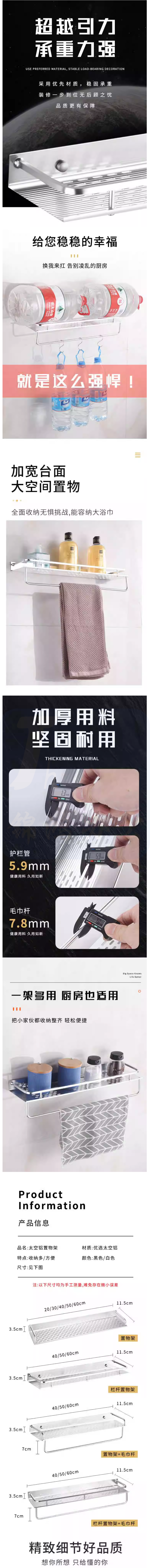 太空铝浴室厨房免打孔收纳栏 40*11.5cm 货号:JC