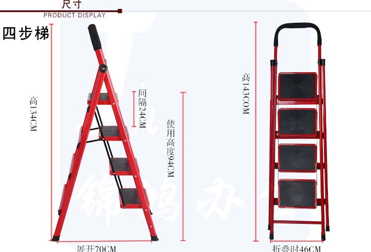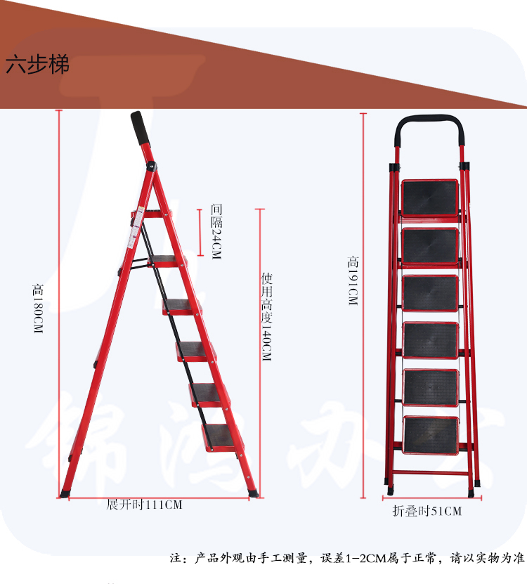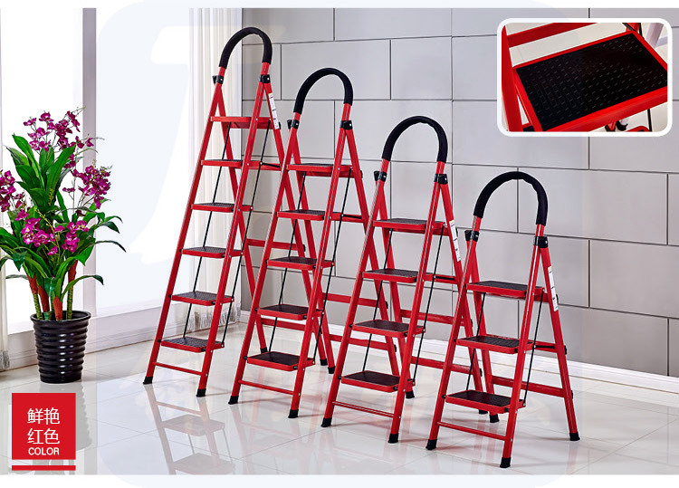 步步高(BBK) 家用折叠梯室内梯加厚碳管人字梯工程梯子 红色的六步梯
