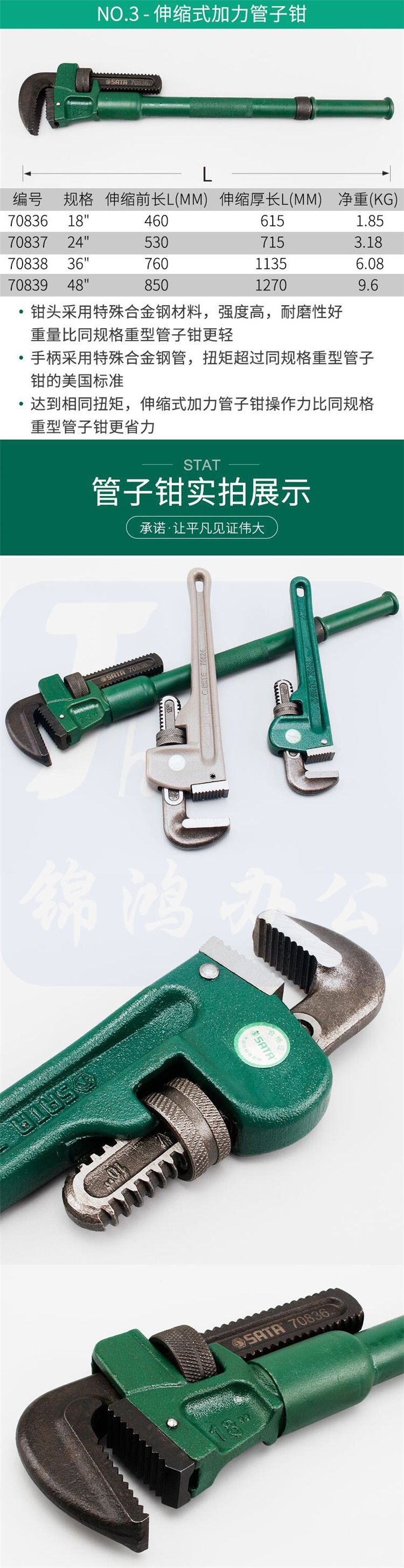 世达 14寸 管钳 350MM 重型管子钳