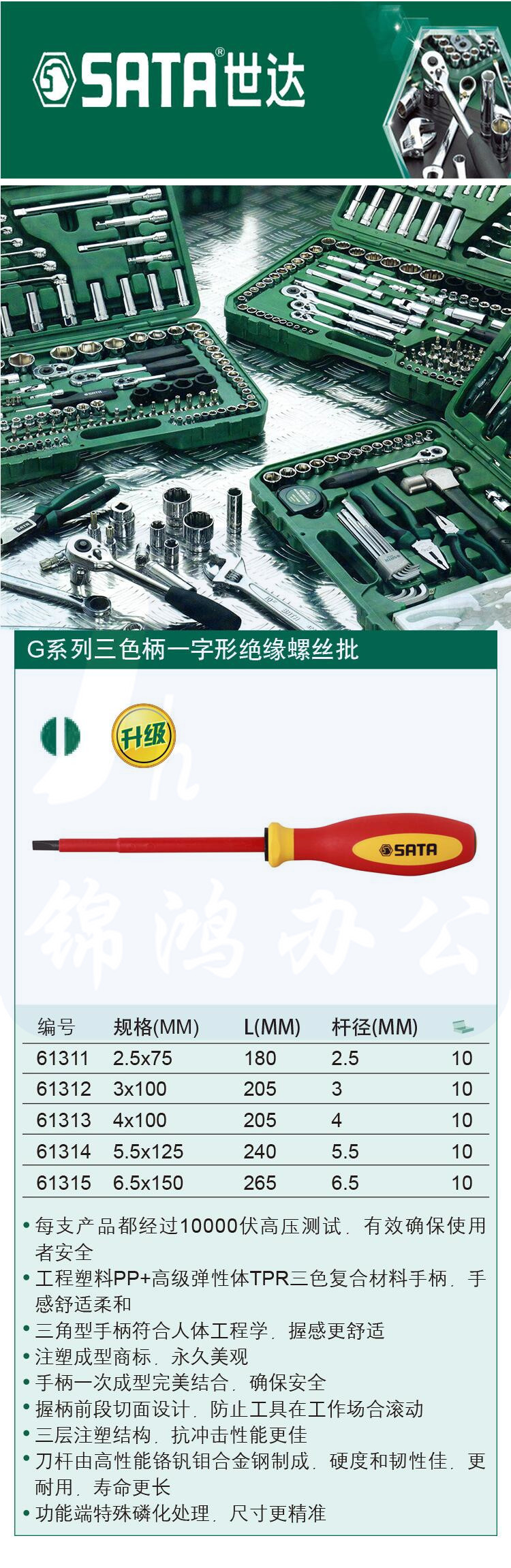 世达 61312一字绝缘螺丝批3x100MM一字螺丝刀改锥