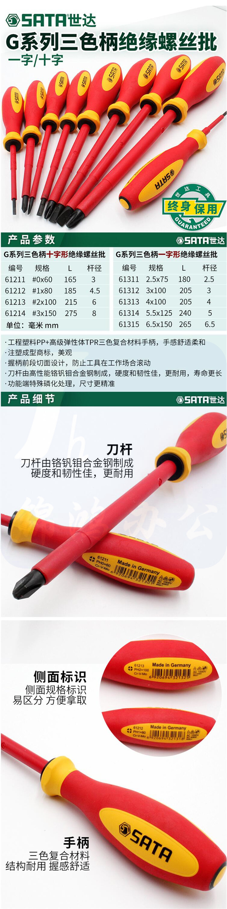 世达双色柄十字绝缘螺丝批#2x100MM 61213