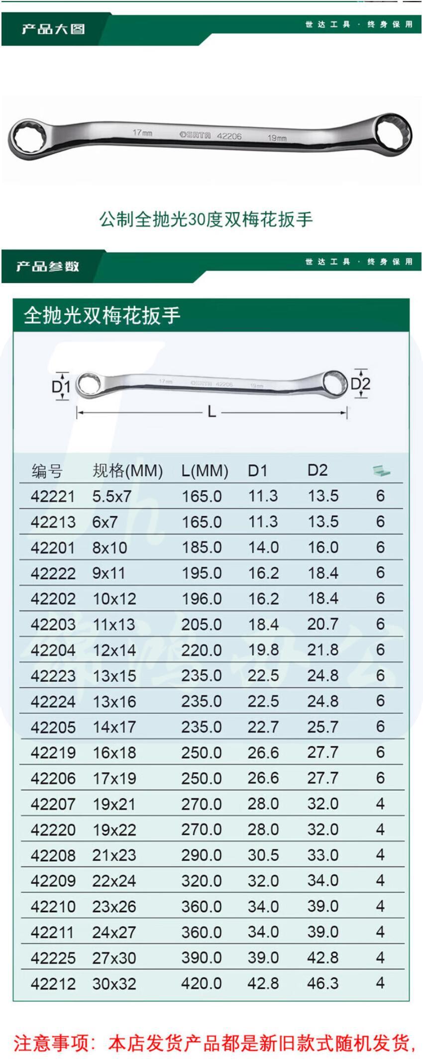 世达 42220全抛光双梅花扳手19x22MM