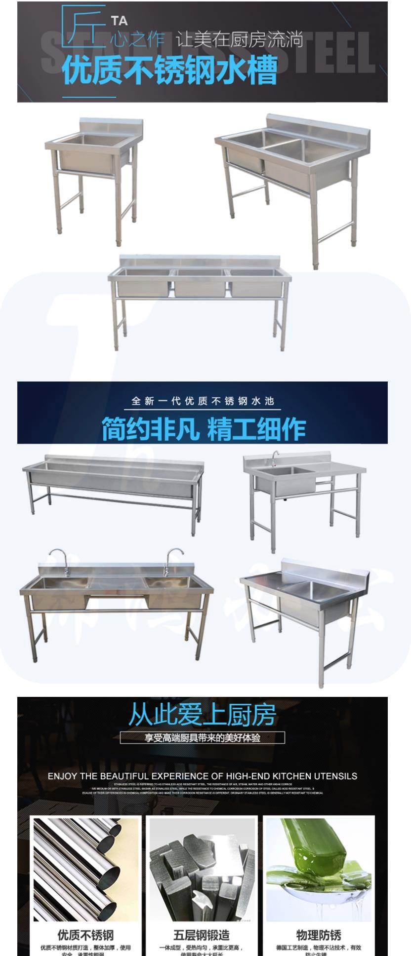 不锈钢三眼水池 三星水池 1800*650*800mm 带柜 货号:JC