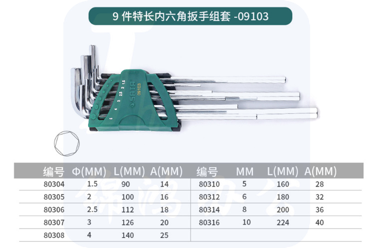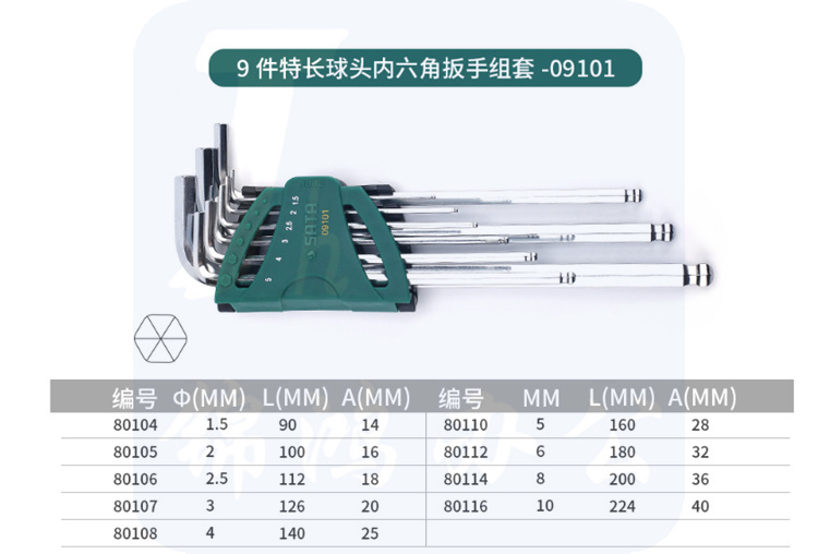 世达(SATA) 09103 9件特长内六角扳手组套