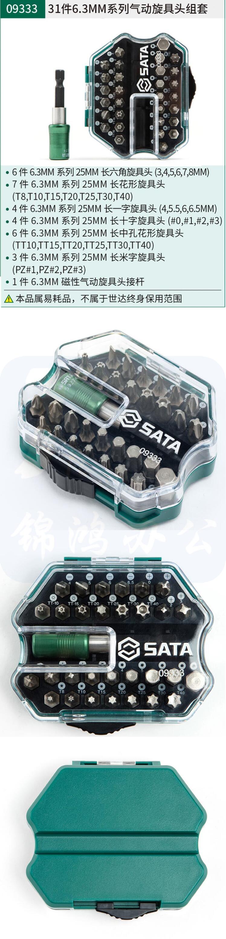 世达(SATA) 09333 31件套6.3系列气动旋具头组套