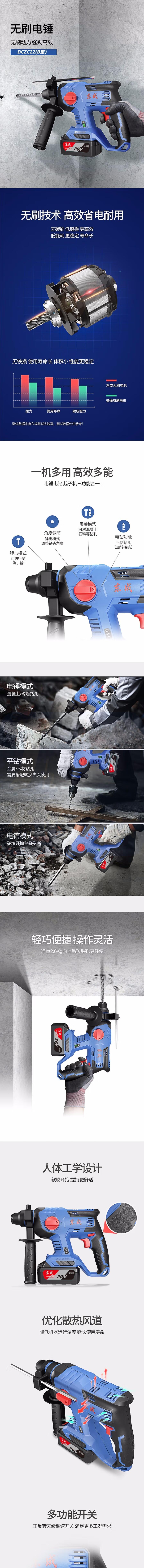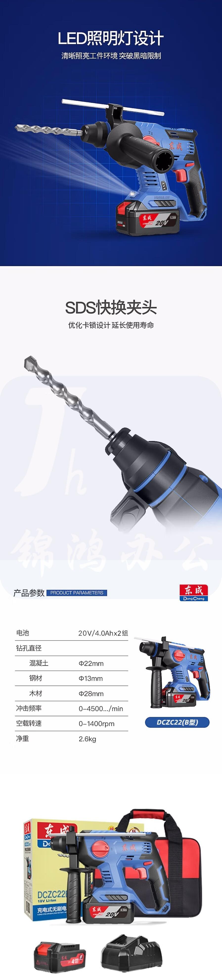 东成 DCZC22B 充电式无刷电锤20V4.0Ah 双电池 冲击钻电钻电镐三用