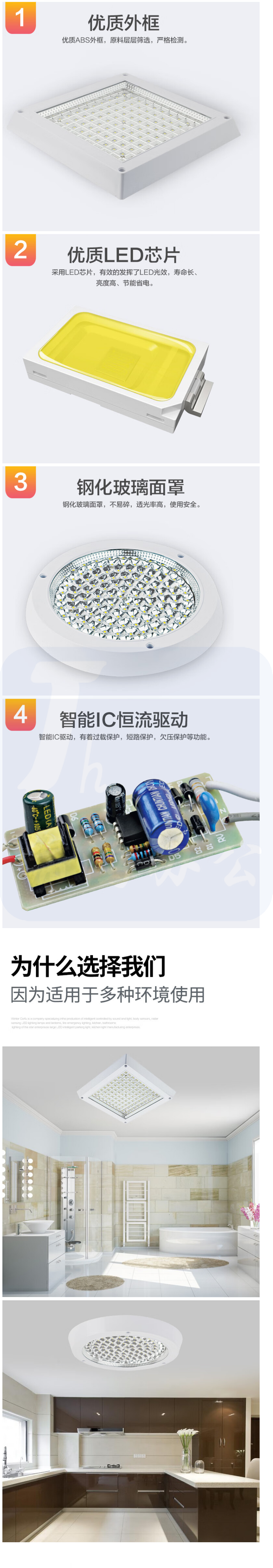 LED厨房灯卫生间吸顶灯 厨卫灯 方形明装10W 货号:JC