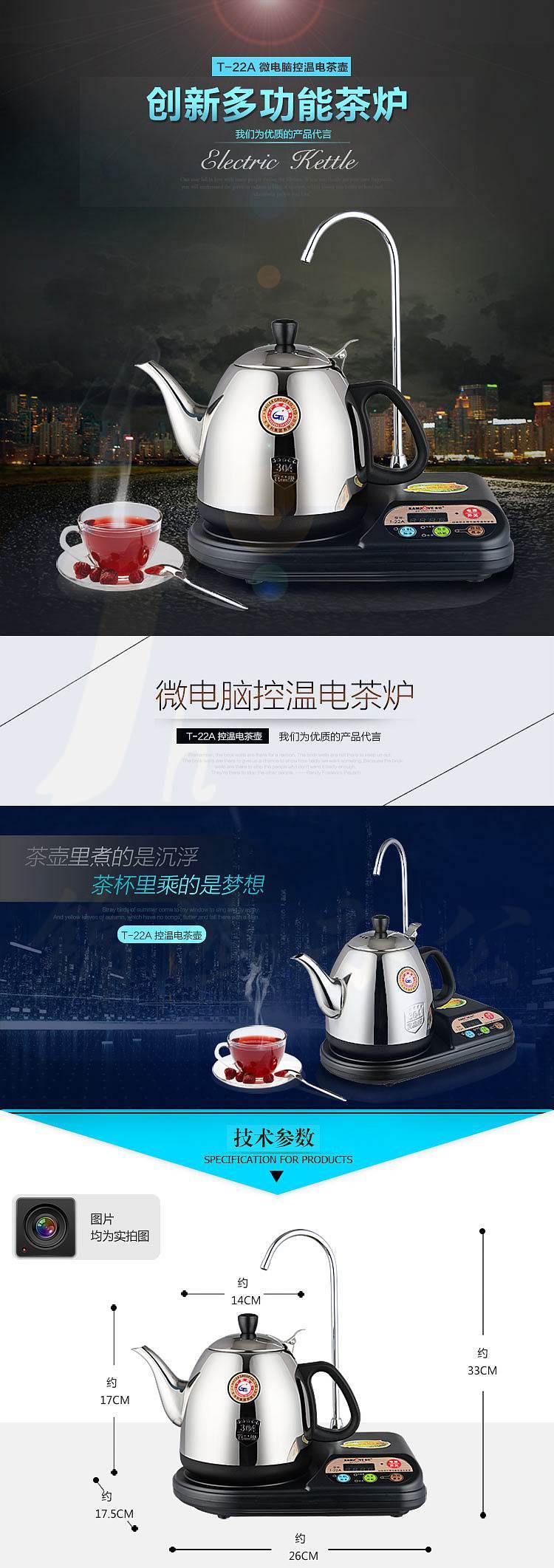 金灶 自动上水电热水壶加抽水器茶具电茶壶 自动加水热水壶 烧水壶茶具 T-22A