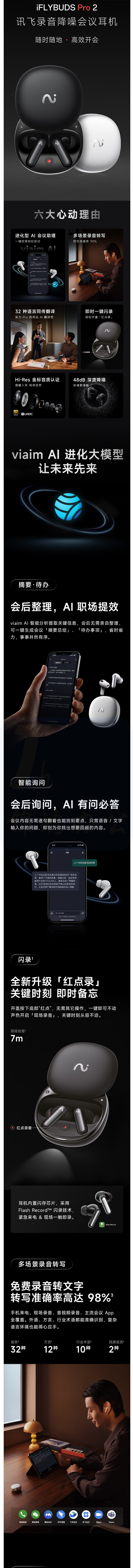 科大讯飞 录音降噪会议耳机Pro2夜影黑 一键闪录 AI会议助理 同传翻译