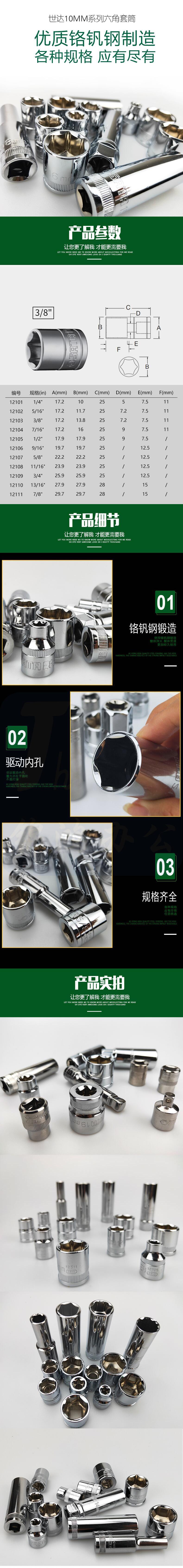 世达(SATA) 12111 10MM系列英制6角套筒7/8"