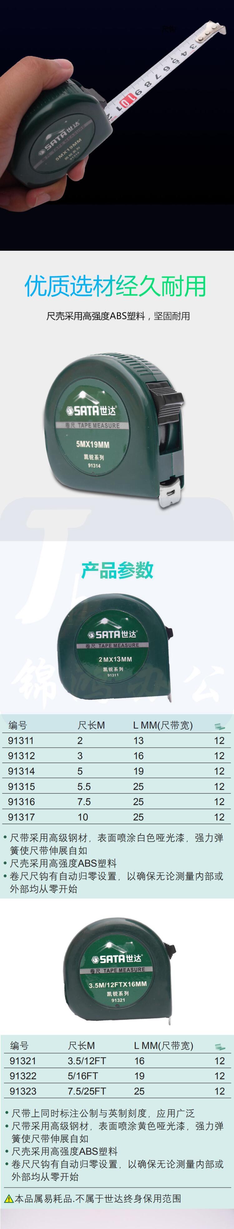 世达(SATA) 91314A 凯锐系列钢卷尺5Mx19MM