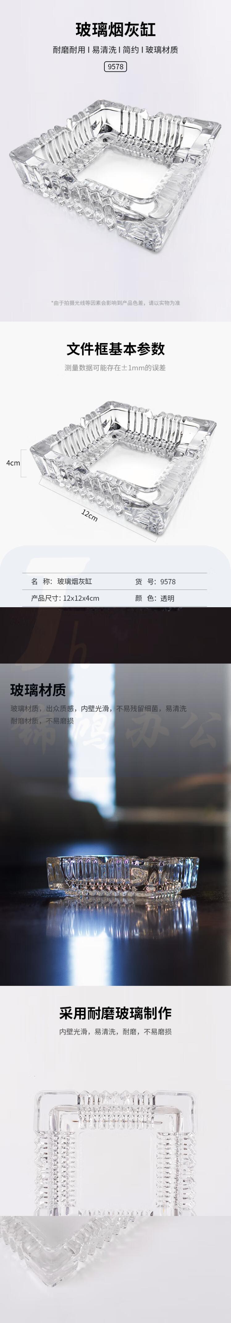 得力(deli)9578 烟灰缸 透明玻璃缸 (12*12cm)