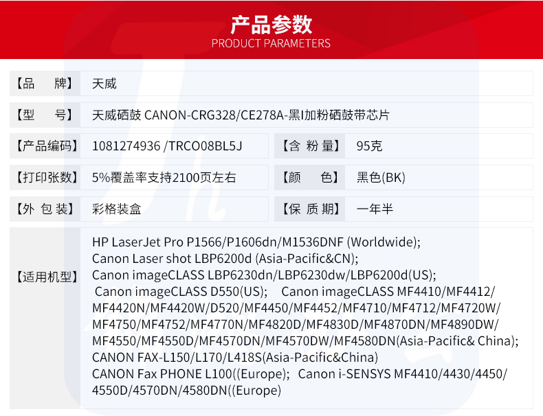 天威(PRINT-RITE)CANON-CRG328/CE278A-黑硒鼓带芯片 适用惠普CE278A硒鼓1536DNF p1566 1606DN/hp78a佳能crg328 mf4712 4752打印机LBP6230dn大容量