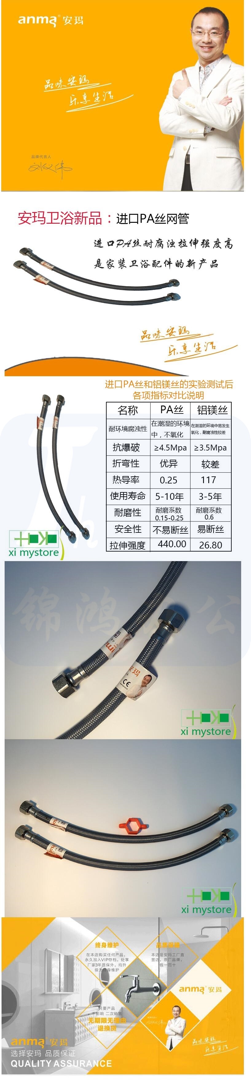 不锈钢软连接管80cm 马桶软管 编织冷热进水软管 上水管 安玛双锁母编织软管