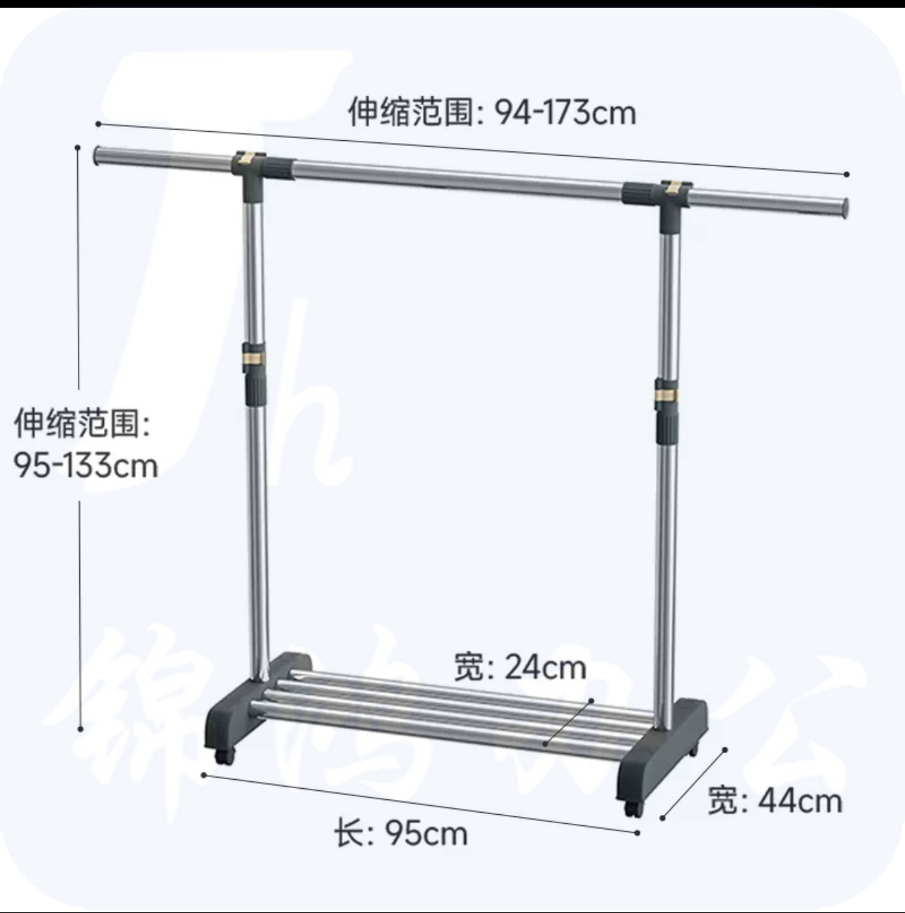 美丽雅 晾衣杆 可移动带轮不锈钢挂衣杆 可伸缩单杆 货号:JC