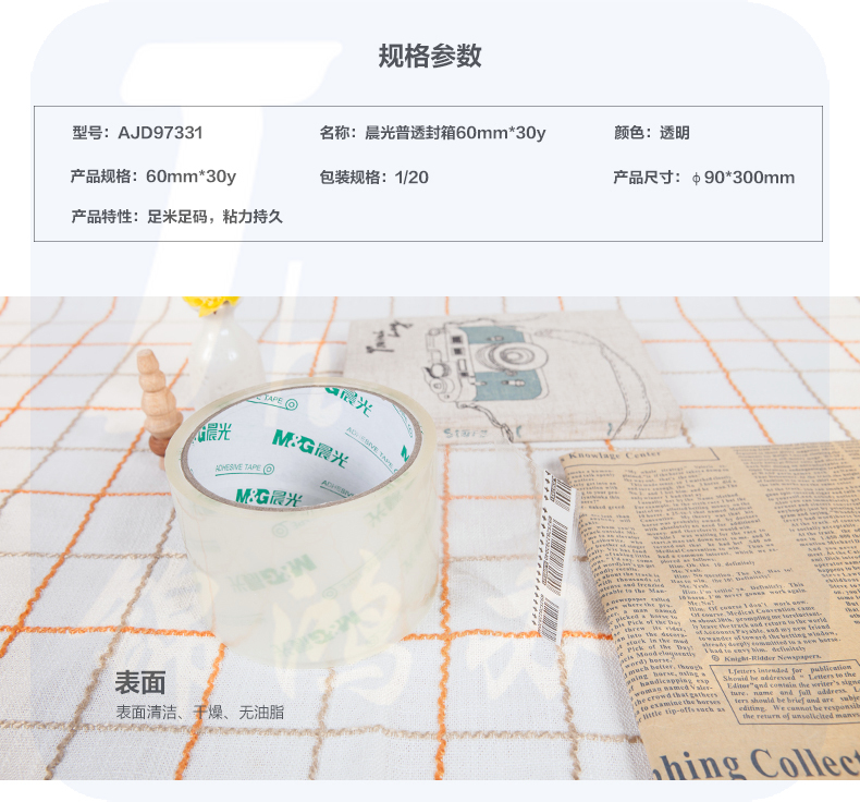 晨光封箱胶带60mm*30y(5卷)AJD97331透明胶带
