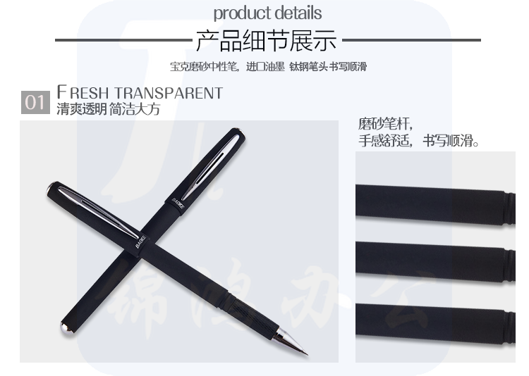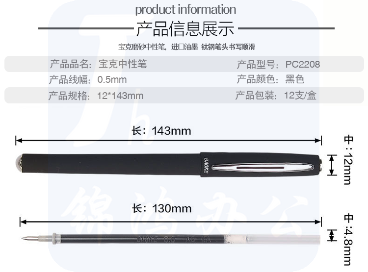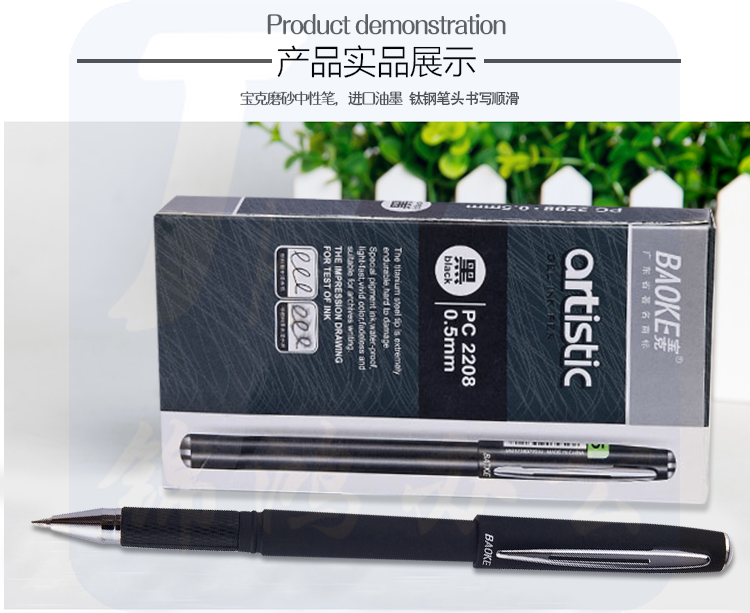 宝克 PC2208 插盖式中性笔 0.5mm 12支/盒 黑色 按盒销售