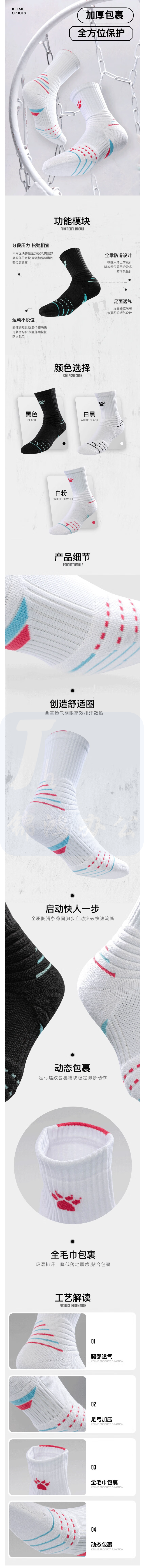 卡尔美(KELME)儿童篮球袜训练比赛加厚包裹透气耐磨防滑袜子 黑色 均码(34-38)