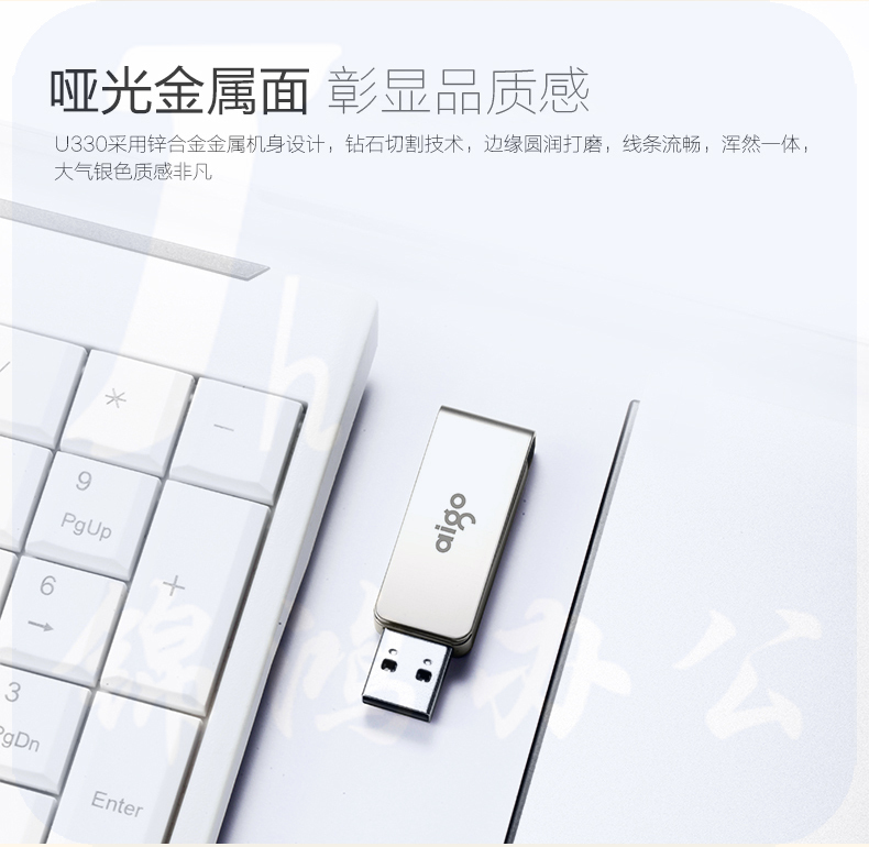 爱国者 64GB USB3.0 U盘 U330金属旋转系列 银色