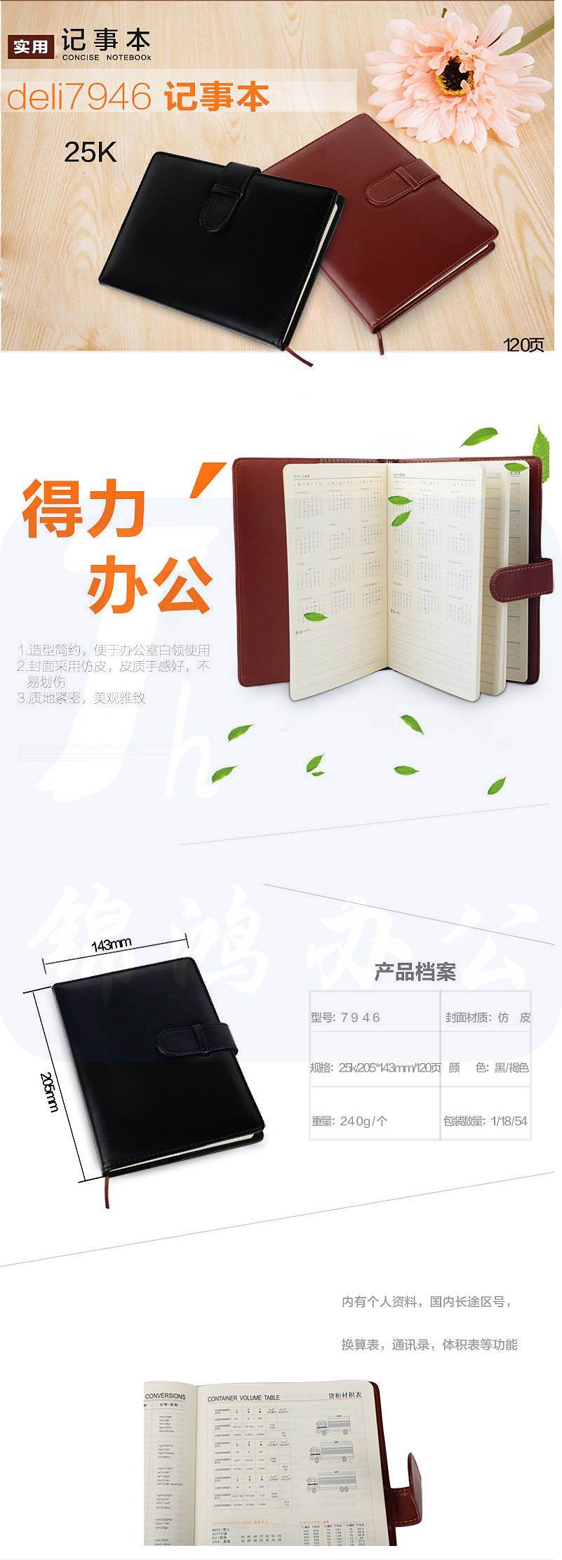 得力(deli) 25K120张商务经典皮面本搭扣软面贴芯会议记事本7946