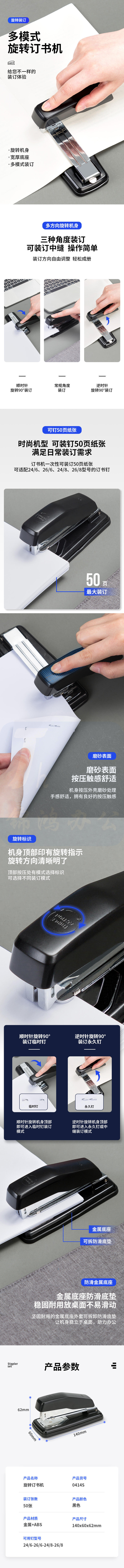 得力(deli)12#50页旋转式订书机 厚层订书器黑色0414S