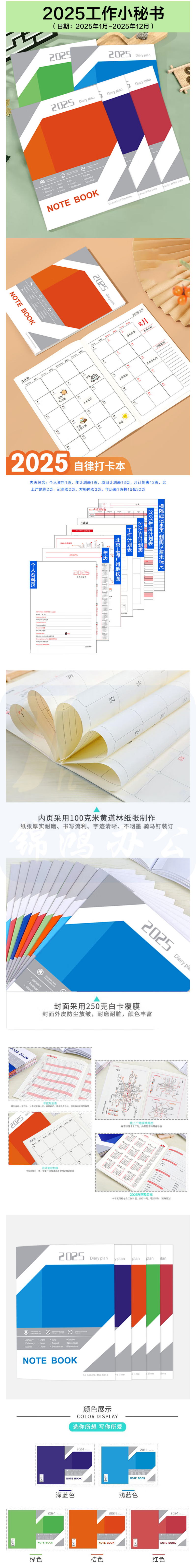 斯图 2025年工作小秘书 效率手册笔记本 月计划年计划本 5本装 货号:JC