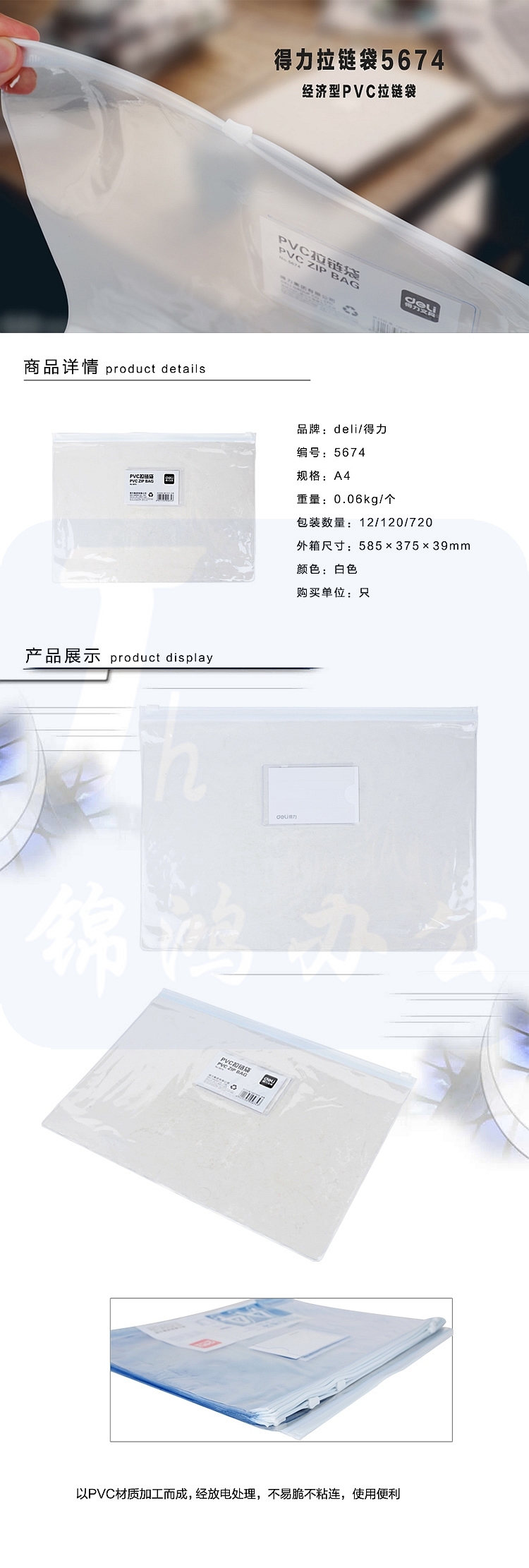 得力(deli)拉链文件袋档案袋公文袋透明收纳袋 5674(12只/包)单只价格