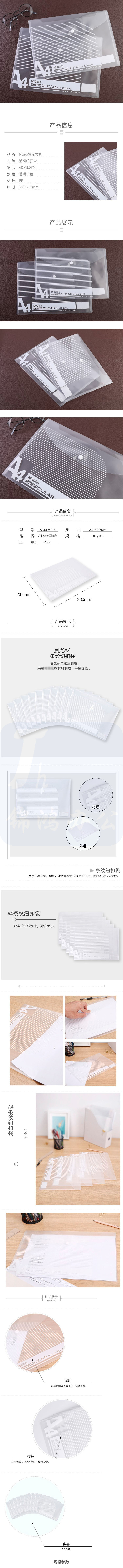 晨光 文件袋 按扣袋条纹文件袋10个装ADM95074 单位:包